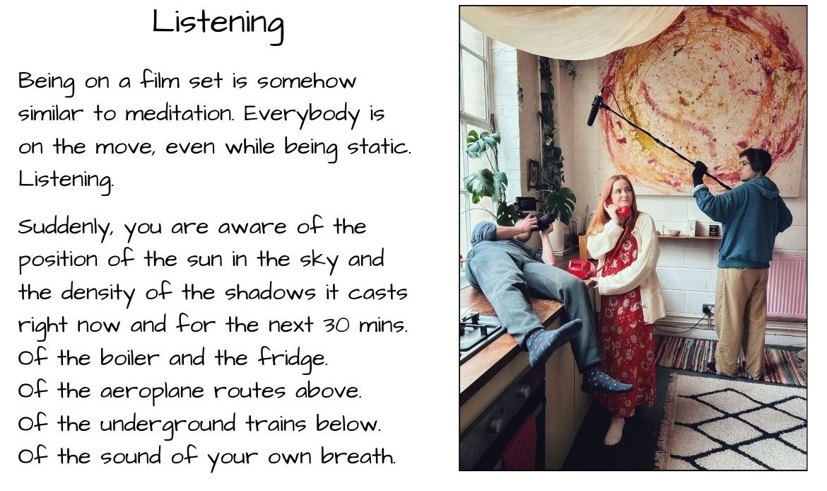 A boom pole echoes that stance, its microphone testing the air around the heroine.